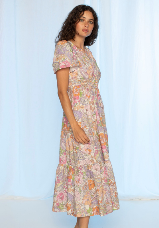 Featuring short sleeves and a flattering scoop split neckline, the Scarlett Dress is adorned with a vibrant floral print that brings a playful yet elegant touch. Light, breezy, and eye-catching, it’s the perfect piece to take you from daytime outings to evening dinners with ease and style.