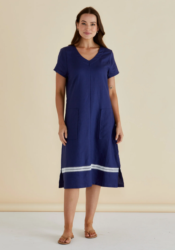 The Elwood Dress blends breathable viscose/linen fabric with a relaxed, oversized fit for ultimate comfort. Its V-neckline and side splits add a refined, elevated edge to this classic silhouette. Pockets enhance its practicality, making it an easy, transeasonal dress that effortlessly transitions through the seasons.